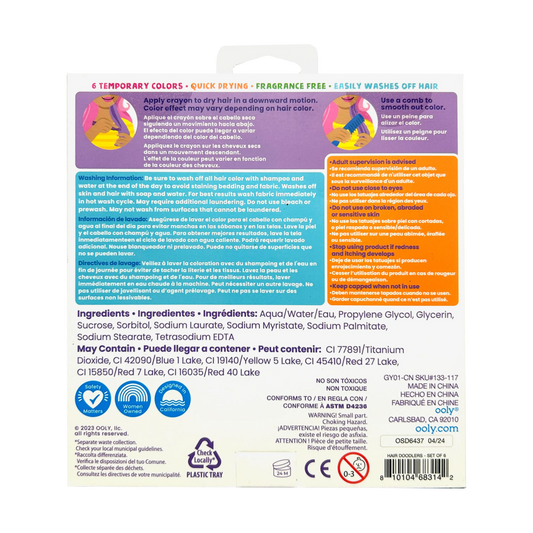 Ooly Hair Doodlers Hair Crayons - Set of 6 Colours
