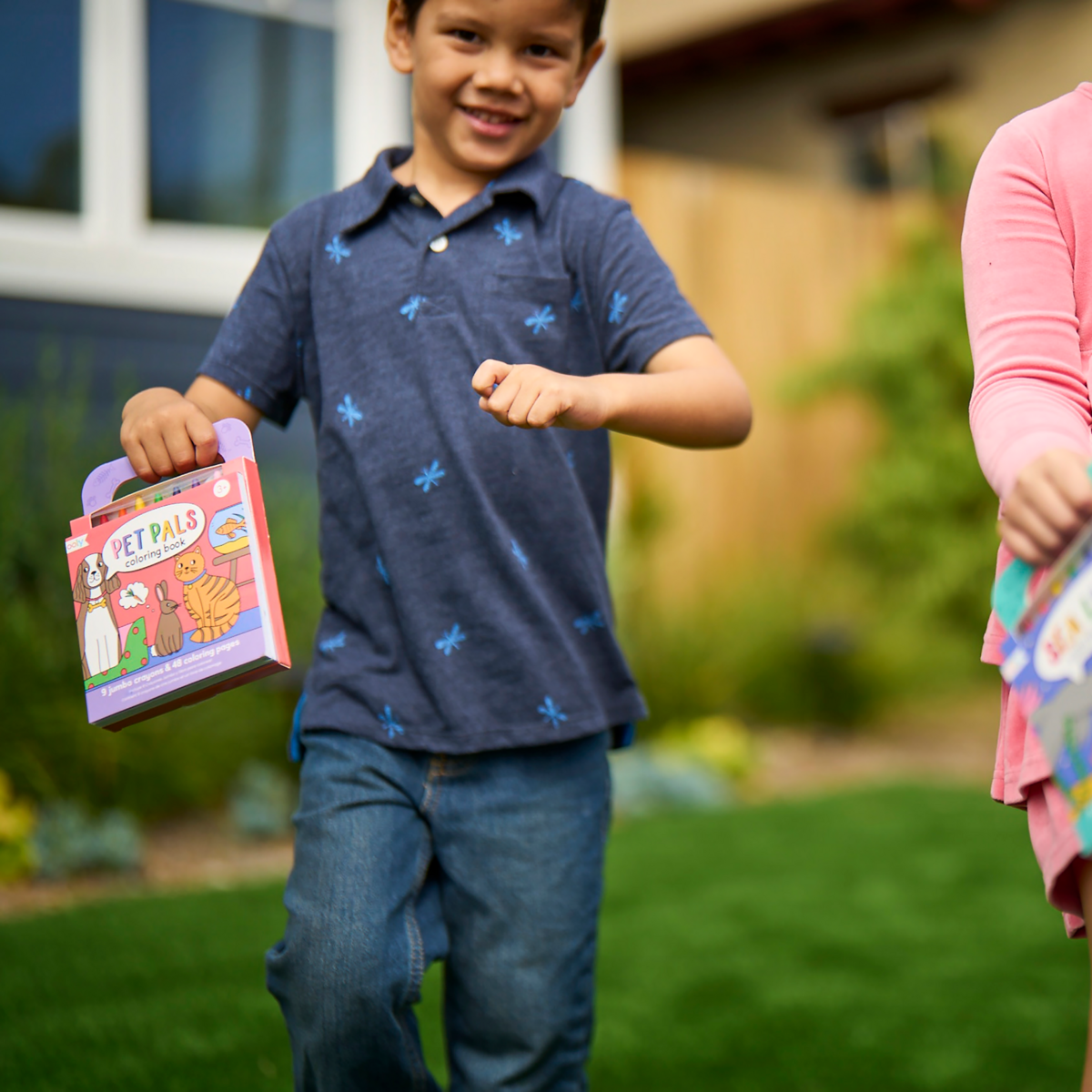 The smart carry case for this ocean animal colouring set includes 9 jumbo crayons—perfect for little hands—and 48 colouring pages. It’s the ultimate travel colouring set to keep with you always so your kiddo never swims in boring seas.
