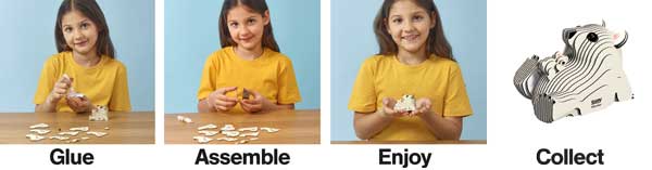 Made using high quality recycled card with eco-friendly ink and non-toxic glue. Simply glue the pieces together in numerical sequence. Assembly takes 10-20 minutes. Designed in New Zealand and patented.