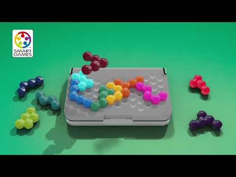 1 compact game board with transparent lid, 12 colourful puzzle pieces and 1 booklet with 120 challenges and solutions.