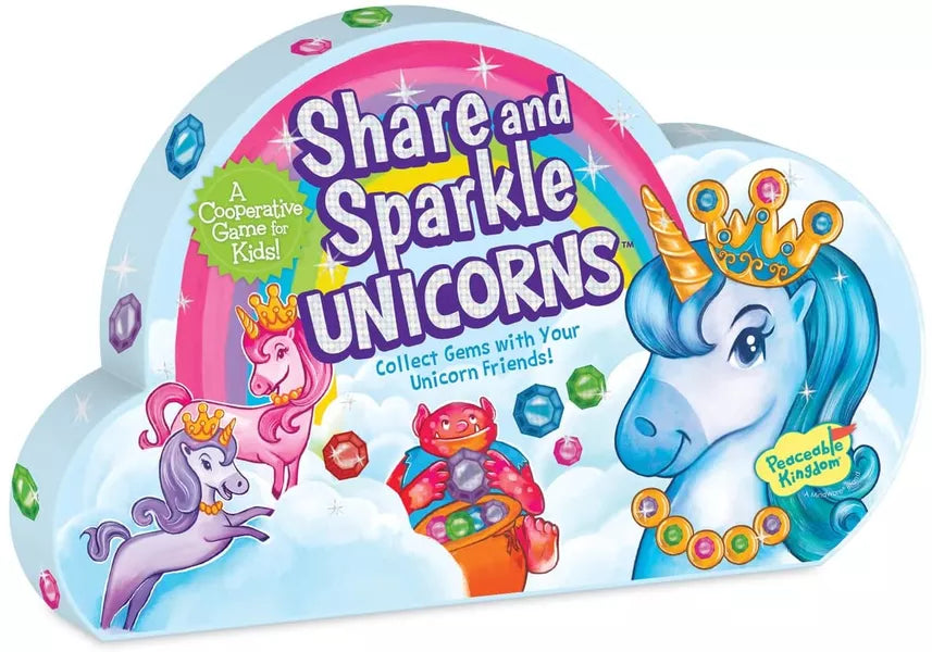 Share and Sparkle Unicorns is a charming cooperative board game for young children (ages 4 and up) from Peaceable Kingdom. It's a delightful mix of colorful gems, adorable unicorns, and a dash of teamwork, designed to teach valuable skills while igniting imaginations.