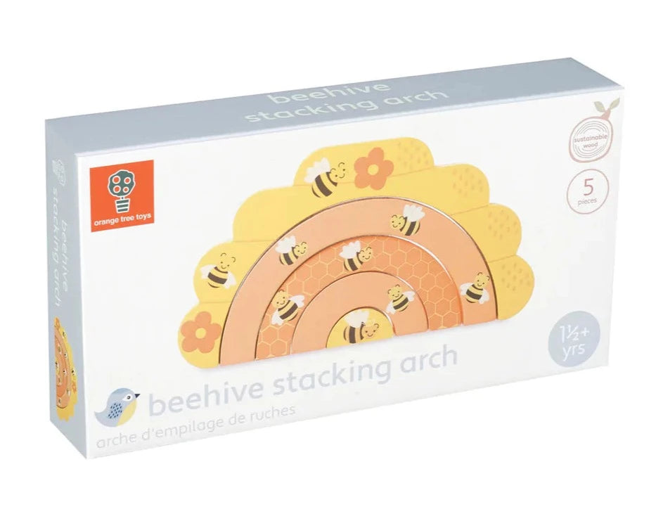 Build the busy honey bees a beehive with this lovely arch stacker! With 5 different sized arches featuring the queen bee in the centre, honeycomb, and lots of worker bees, kids will love stacking up the arches.