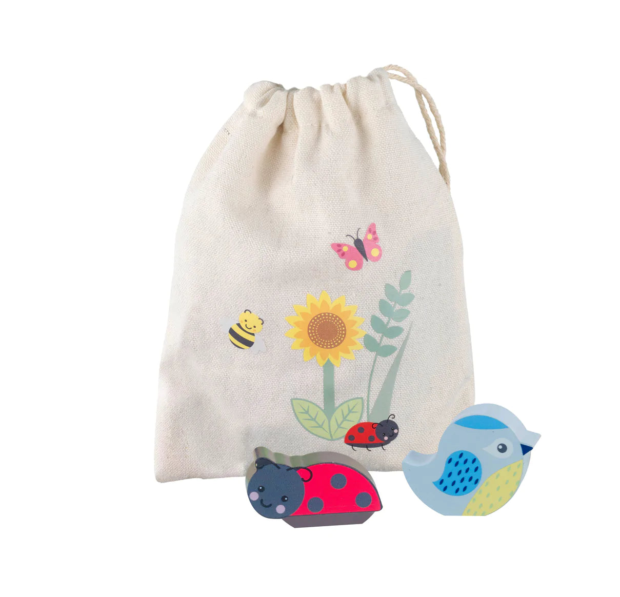 A lovely set of beautifully coloured wooden pieces from a spring garden, including flowers, butterflies, birds & more!