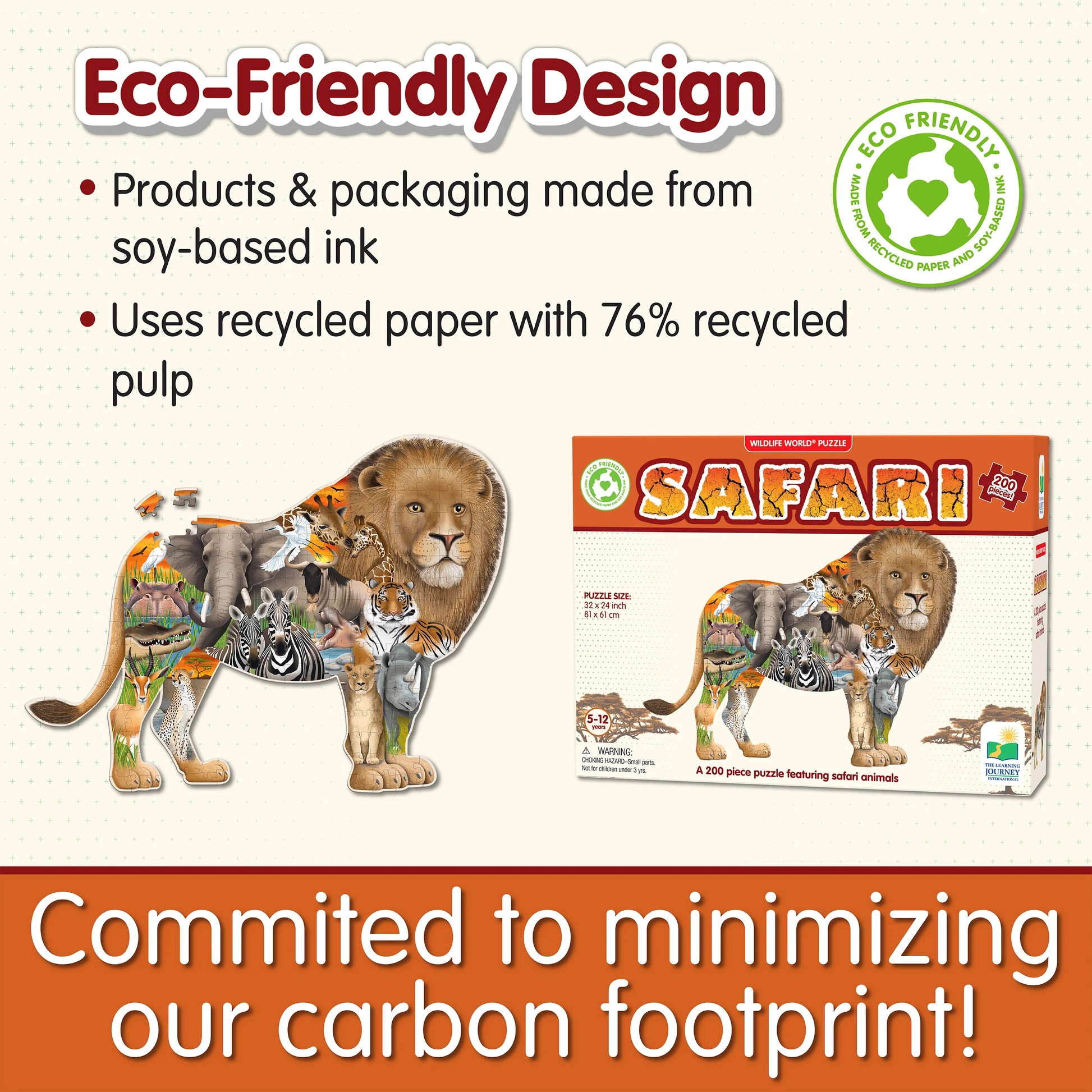 KEY FEATURES - This uniquely illustrated and shaped 200-piece puzzle is perfect for preteens to expand their knowledge and is a great gift for both boys and girls ages 3 and up. Designed to strengthen problem-solving and encourage early language and learning skills, this safari themed puzzle makes it fun to learn through play. 200 puzzle pieces made of thick, durable cardboard construction. Completed puzzle measures approximately 36” x 24”.